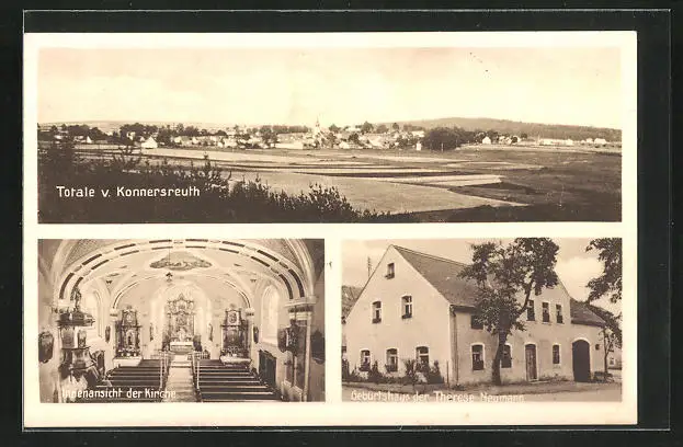 AK Konnersreuth, Innenansicht der Kirche, Geburtshaus der Therese Neumann, Totalansicht