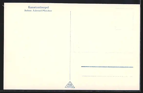Personenbezogene Daten auf der Rückseite der Karte wurden durch blauen Textmarker unkenntlich gemacht. Die blauen Stellen sind auf die Vorderseite durchgeweicht und wirken sich negativ auf das Postkartenfoto aus