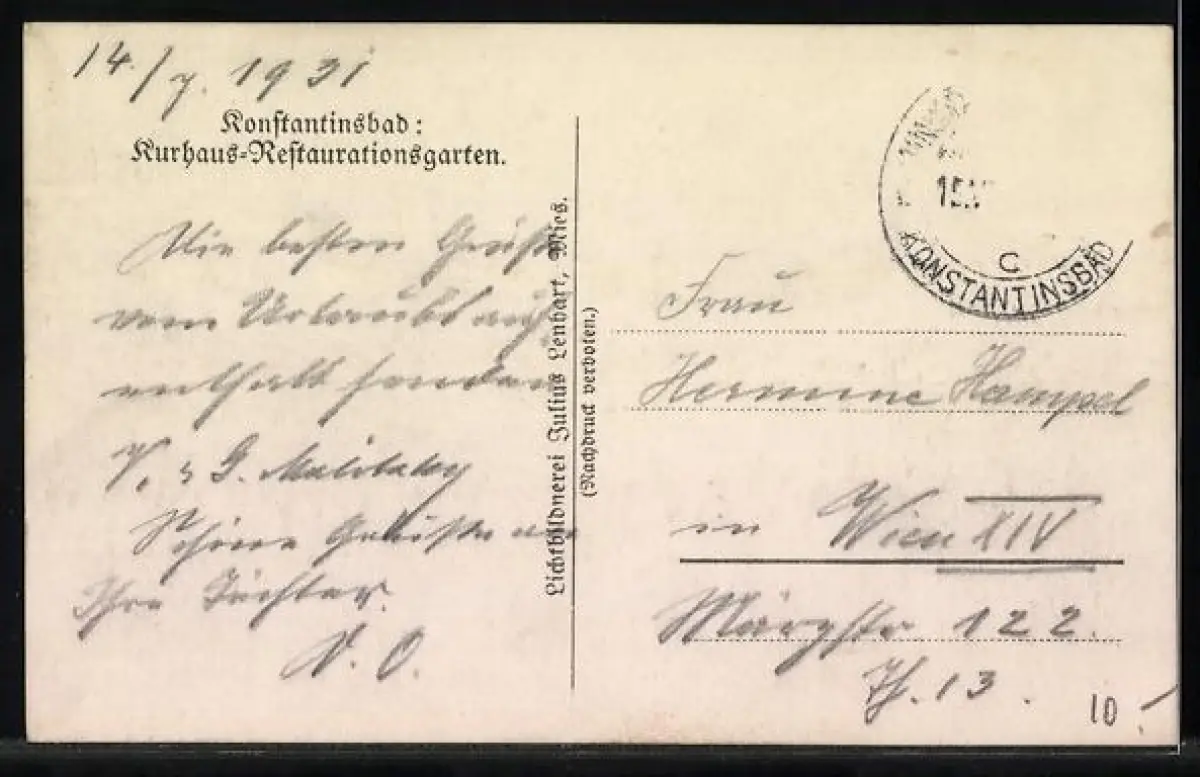 AK Konstantinsbad, Kurhaus-Restaurationsgarten im Sommer
