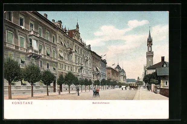 AK Konstanz, Bahnhofstrasse mit Kirche
