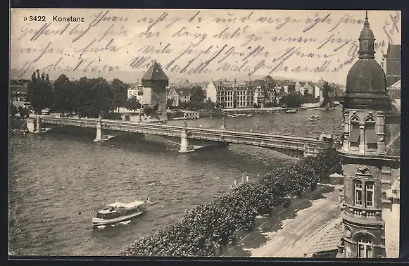 AK Konstanz, Blick aufs Wasser mit Dampfer