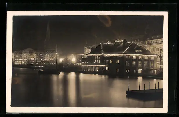 AK Konstanz / Bodensee, Hafen bei Nacht