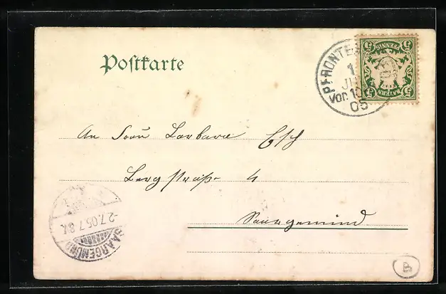 gelaufen 1905, Eckknicke li. unten, guter Zustand