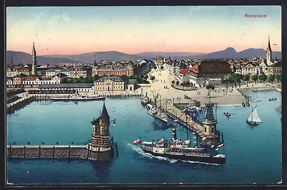 AK Konstanz, Dampfer am Hafen