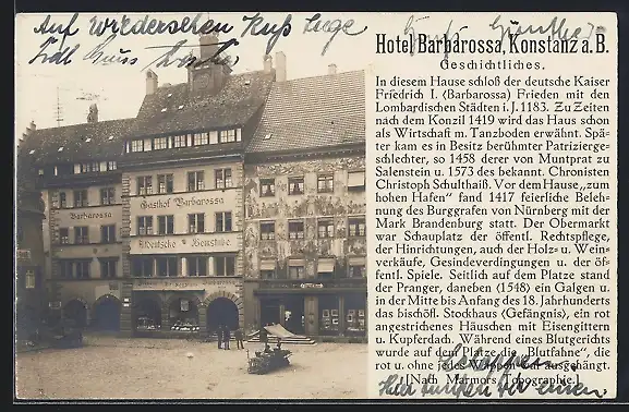 AK Konstanz, Gasthof-Hotel Barbarossa, Info-Text