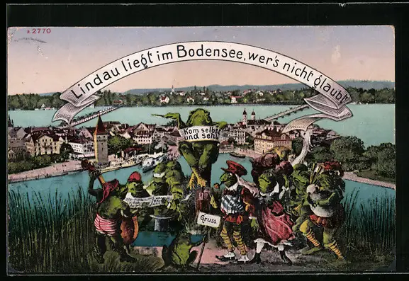 AK Konstanz, Gesamtansicht, Froschorchester vor der Stadt