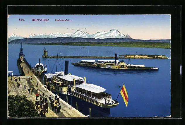 AK Konstanz, Hafeneinfahrt mit Dampfer