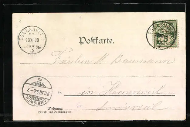 alte Ansichtskarte, gelaufen 1899, Eckknick re. oben, guter Zustand
