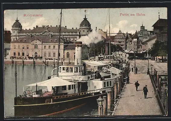 AK Konstanz, Hafenpartie mit anlegenden Dampfern