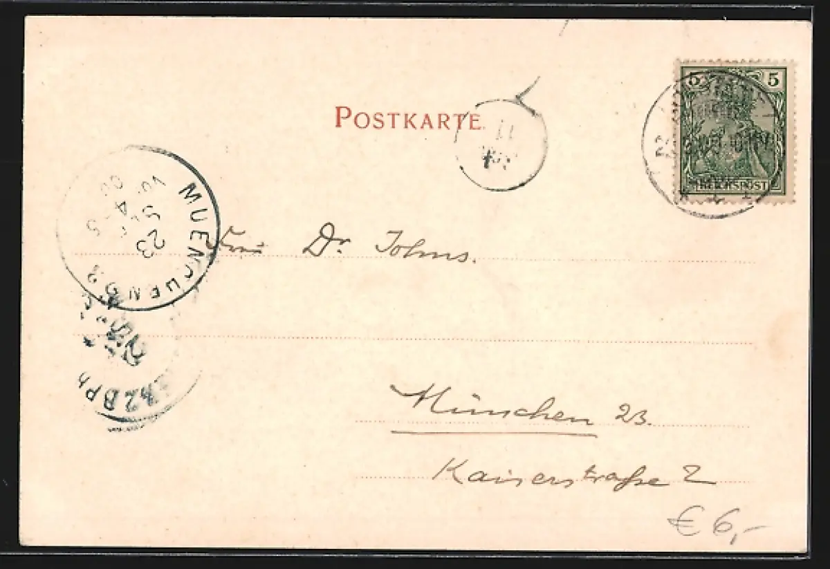 alte Ansichtskarte, gelaufen 1900, Stempelspur, guter Zustand