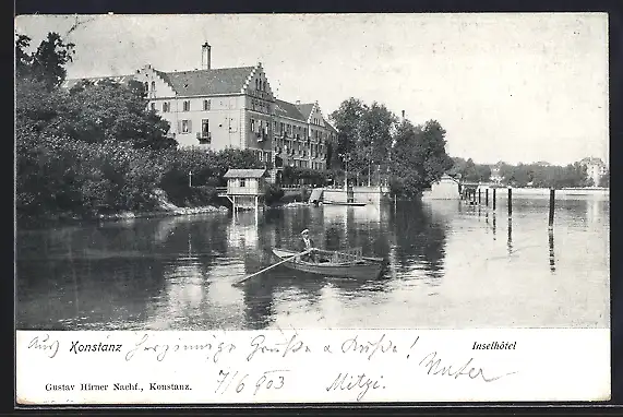 AK Konstanz, Inselhotel am Wasser, Boot im Wasser