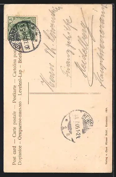 alte Ansichtskarte, gelaufen 1905, guter Zustand