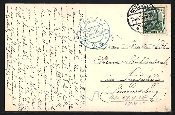 alte Ansichtskarte, gelaufen 1915, Eckknick unten li., Stempelspur, guter Zustand