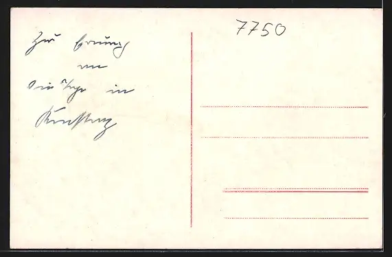 Personenbezogene Daten auf der Rückseite der Karte wurden durch blauen Textmarker unkenntlich gemacht. Die blauen Stellen sind auf die Vorderseite durchgeweicht und wirken sich negativ auf das Postkartenfoto aus