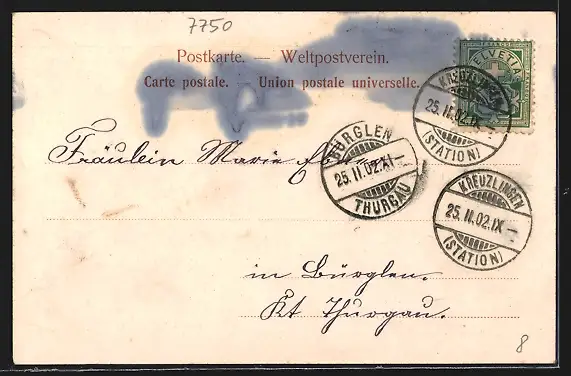 alte Ansichtskarte, gelaufen 1902, leicht fleckig, guter Zustand