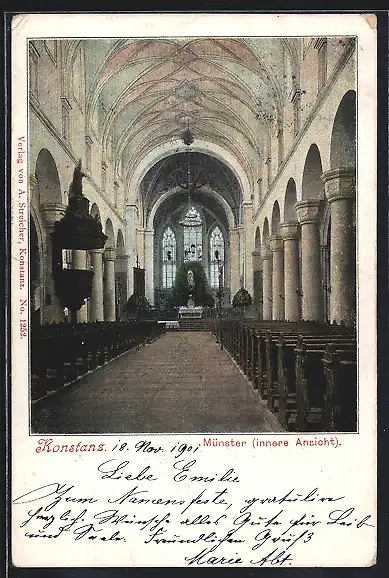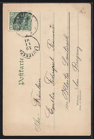 alte Ansichtskarte, gelaufen 1901, Eckknicke li. oben u. re., Stempelspur, guter Zustand