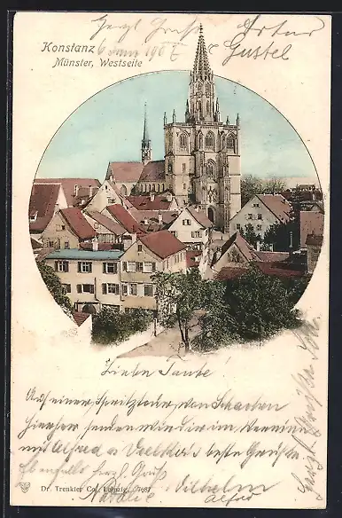 AK Konstanz, Münster, Westseite, Blick über die Dächer
