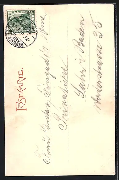 alte Ansichtskarte, gelaufen 1907, Einriss li. unten, guter Zustand