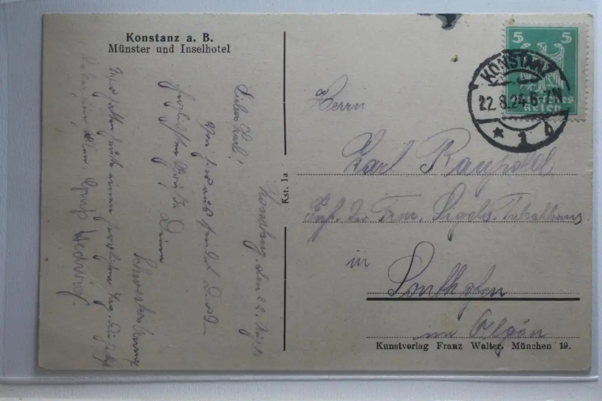 AK Konstanz Münster und Inselhotel 1924 #PI685