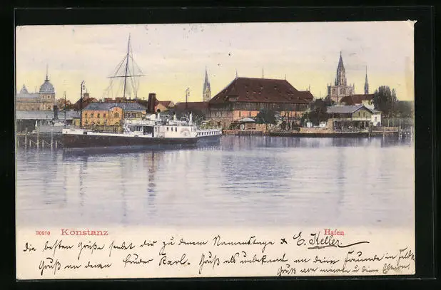 AK Konstanz, Ortsansicht mit Hafenpartie