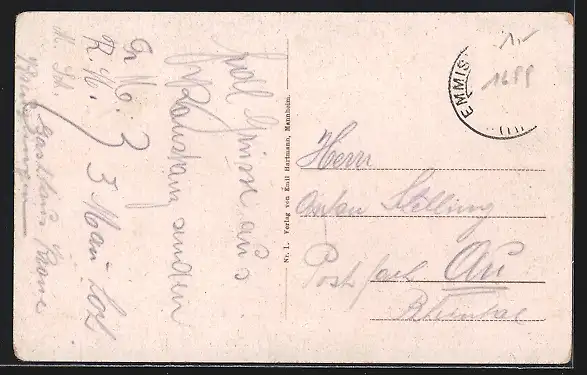 alte Ansichtskarte, gelaufen, Briefmarke entfernt, Eckknick links unten, guter Zustand