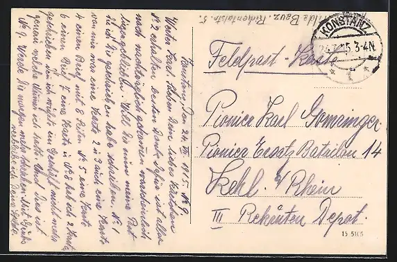 alte Ansichtskarte, gelaufen 1915, guter Zustand
