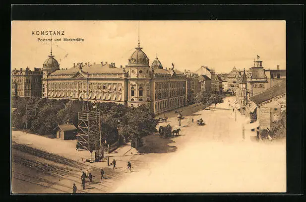 AK Konstanz, Postamt und Marktstätte aus der Vogelschau
