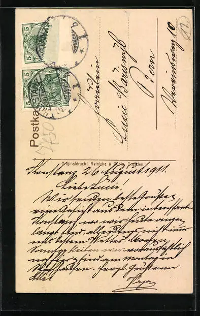alte Ansichtskarte, gelaufen 1911, Stempelspur, guter Zustand