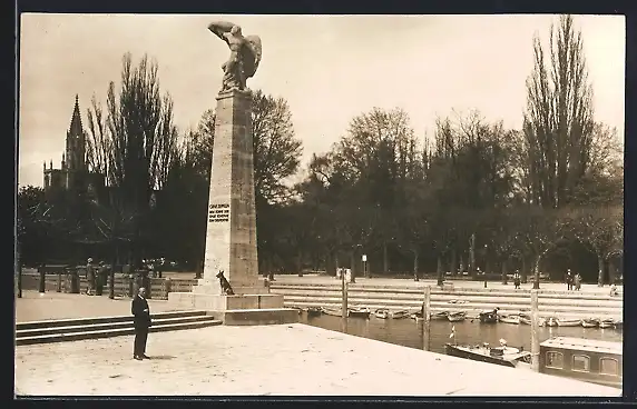 AK Konstanz, Zeppelin-Denkmal am Hafen