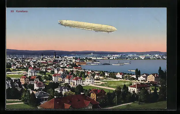 AK Konstanz, Zeppelin-Luftschiff über der Stadt