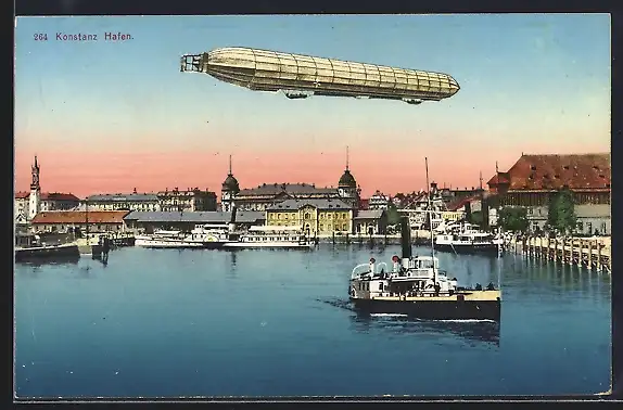 AK Konstanz, Zeppelin über dem Hafen