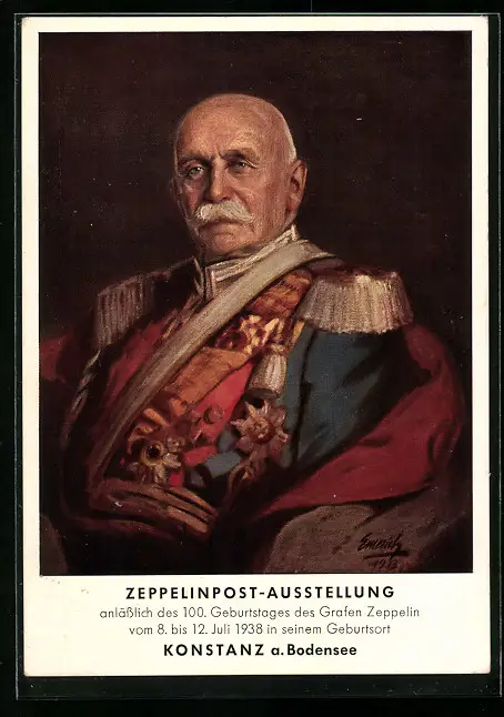 AK Konstanz, Zeppelinpost-Ausstellung 1038, Graf Zeppelin in Uniform