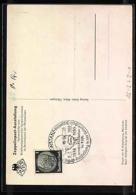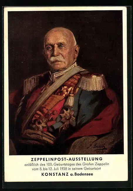 AK Konstanz, Zeppelinpost-Ausstellung 1938, Graf Zeppelin in Uniform zu seinem 100. Geburtstag