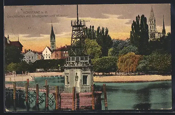 AK Konstanz a. B., Gondelhafen mit Stadtgarten und Münster