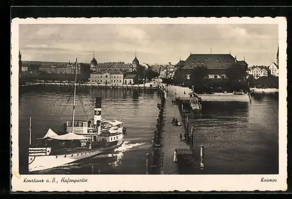 AK Konstanz a. B., Hafenpartie mit Ortsansicht