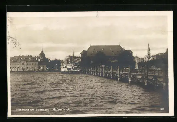 AK Konstanz a. Bodensee, Ortsansicht mit Hafen