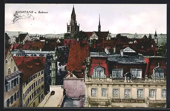 AK Konstanz a. Bodensee, Strassenpartie mit Kirche