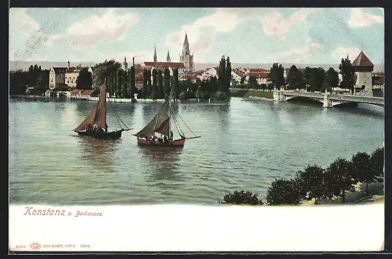 AK Konstanz a. Bodensee, Uferpartie mit Kirche