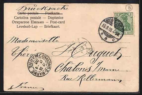 alte Ansichtskarte, gelaufen 1903, Eckknicke li., guter Zustand