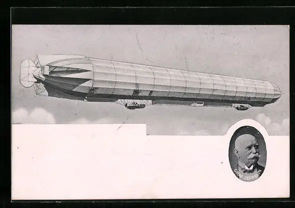 AK Konterfei Graf Zeppelin, Eins seiner ersten Luftschiffe