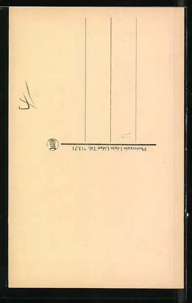 Personenbezogene Daten auf der Rückseite der Karte wurden durch blauen Textmarker unkenntlich gemacht. Die blauen Stellen sind auf die Vorderseite durchgeweicht und wirken sich negativ auf das Postkartenfoto aus