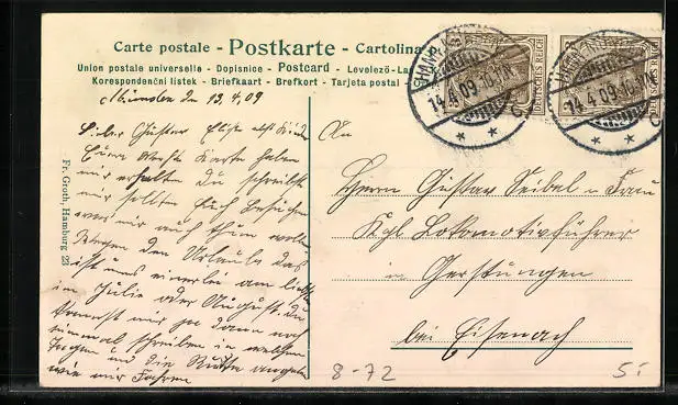 alte Ansichtskarte, gelaufen 1909, guter Zustand