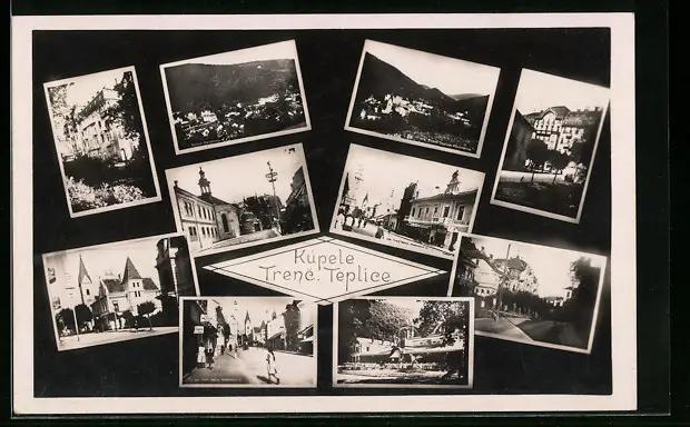 AK Kúpele Trenc. Teplice, Kirche, Ortspartie, Strassenpartie