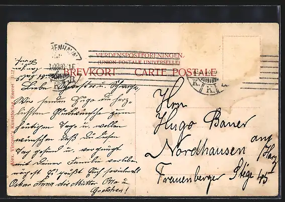 alte Ansichtskarte, gelaufen 1908, Briefmarke entfernt, Stempelspur, guter Zustand