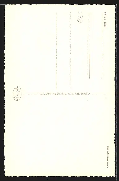 Personenbezogene Daten auf der Rückseite der Karte wurden durch blauen Textmarker unkenntlich gemacht. Die blauen Stellen sind auf die Vorderseite durchgeweicht und wirken sich negativ auf das Postkartenfoto aus