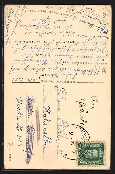 alte Ansichtskarte, gelaufen 1927, Eckknicke unten re., guter Zustand