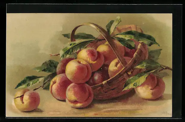 AK Korb mit frischen Pfirsichen