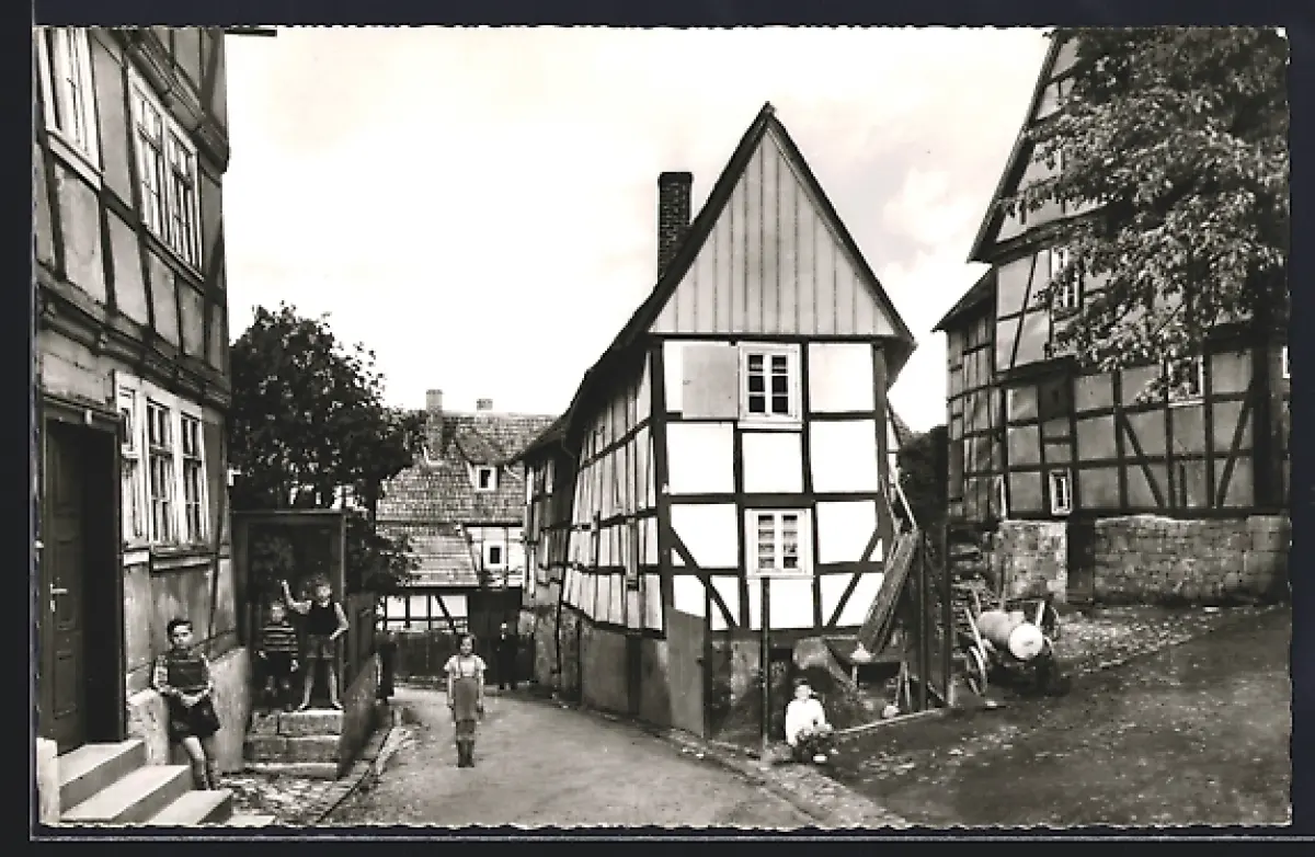 AK Korbach /Waldeck, Im Tempel, Fachwerkhäuser, Strassenansicht