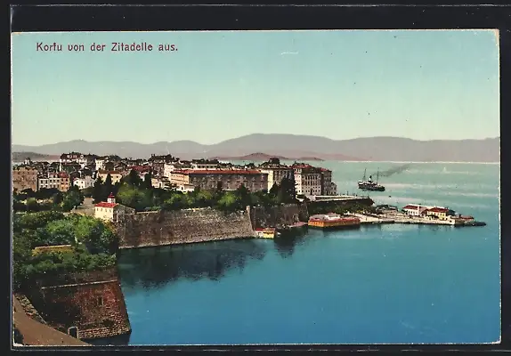 AK Korfu, Ortsansicht von der Zitadelle aus