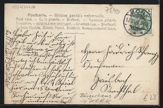 alte Ansichtskarte, gelaufen 1908, guter Zustand